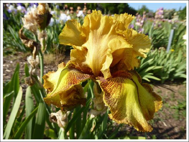 Name: Spiced LemonArt: Tall Bearded Iris TB - Hohe Bart-SchwertlilieHöhe: ca. 95cm Blütezeit: mitteZüchter: Thomas Johnson, 2006, USA